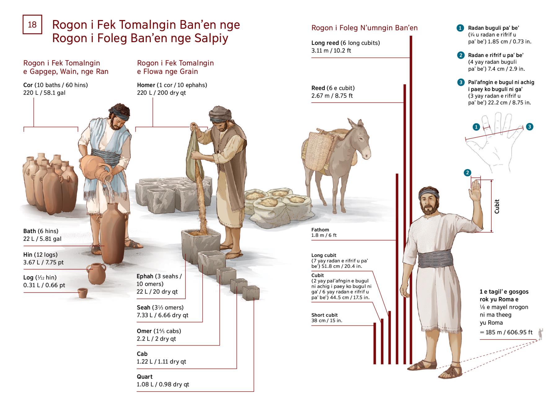Cubit (2 yay pal’afngin e bugul ni achig i paey ko bugul ni ga’ / 6 yay radan e rifrif u pa’ be’)