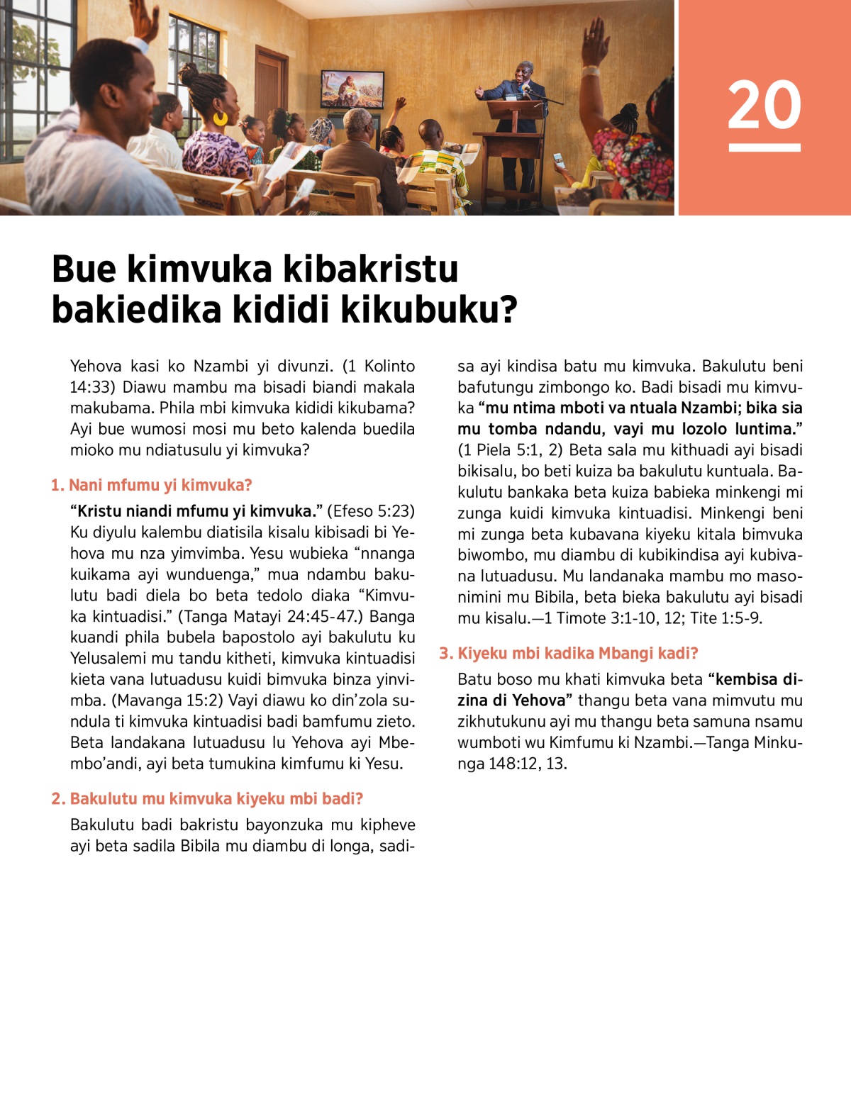 Dilongi 20. Mu lukutukunu lu Bambangi zi Yehova, phangi mosi wubakala yuvudi kiuvu, batu bawombo bobo badi mu lukutukunu beni, banonuni mioko mu diambulu vutula mvutu.