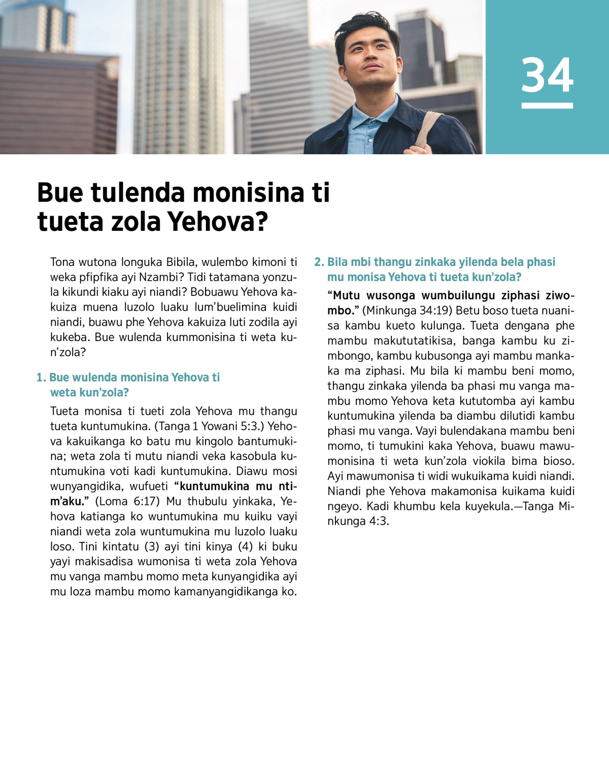 Tueta monisa ti tueti zola Yehova mu thangu tueta kuntumukina. (Tanga 1 Yowani 5:3.) Yehova kakuikanga ko batu mu kingolo bantumukina; weta zola ti mutu niandi veka kasobula kuntumukina voti kadi kuntumukina. Diawu mosi wunyangidika, wufueti “kuntumukina mu ntim’aku.” (Loma 6:17) Mu thubulu yinkaka, Yehova katianga ko wuntumukina mu kuiku vayi niandi weta zola wuntumukina mu luzolo luaku loso. Tini kintatu (3) ayi tini kinya (4) ki buku yayi makisadisa wumonisa ti weta zola Yehova mu vanga mambu momo meta kunyangidika ayi mu loza mambu momo kamanyangidikanga ko.