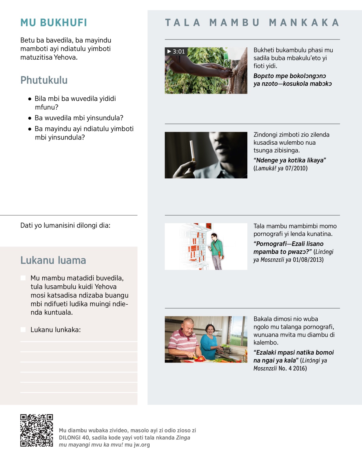 a Va buangu “Tala mambu mankaka,” disolo ditubidi “Ndenge ya kotika likaya” dilenda kusadisa mosi wubika boba mvika zitsunga.