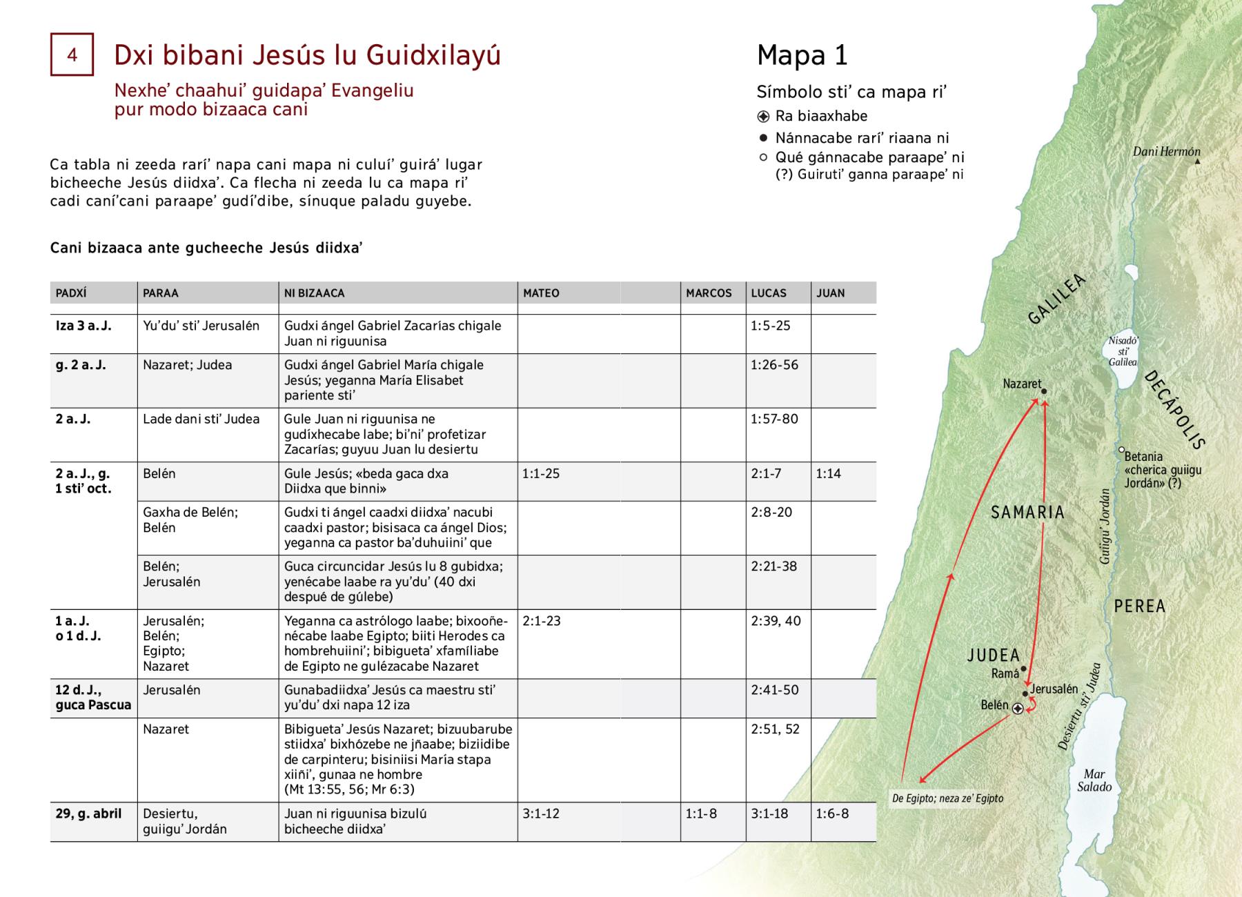 Ca tabla ni zeeda raríʼ napa cani mapa ni culuíʼ guiráʼ lugar bicheeche Jesús diidxaʼ. Ca flecha ni zeeda lu ca mapa riʼ cadi caníʼcani paraapeʼ gudíʼdibe, sínuque paladu guyebe.