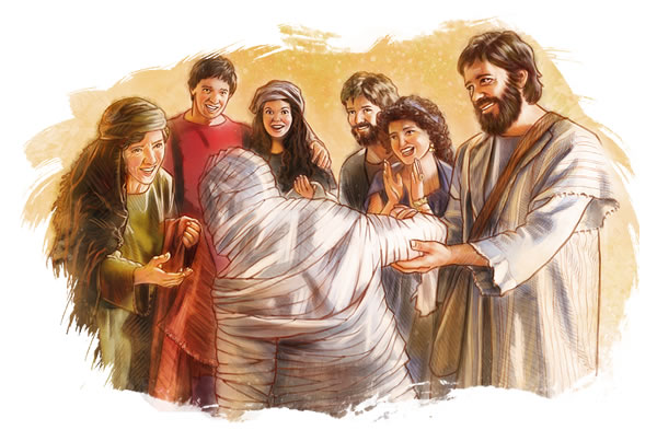Waguqa eduze kwesidumbu wathandaza kuJehova. Ngemva kwalokho, watshela uDorka ukuba avuke, nempela wavuka! UPetru wambamba ngesandla wamphakamisa. Wabe esebiza abafelokazi nabanye ababelapho wababonisa uDorka. Ucabanga ukuthi basabela kanjani lapho bembona?—