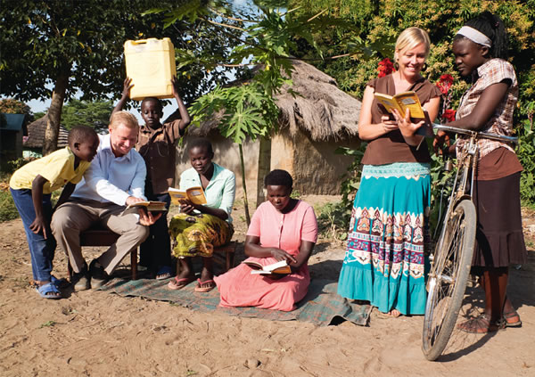 Baqhuba kanjani oKnut noLisbeth e-Uganda? UKnut uyalandisa: “Kwathatha isikhathi ukuba sijwayele indawo entsha namasiko. Izinkinga zamanzi, ugesi nokuphathwa isisu—ziyafika zidlule, kodwa siqhuba izifundo zeBhayibheli eziningi ngendlela esiyithandayo!” ULisbeth uthi: “Uma usuka la sihlala khona, kuthatha isigamu sehora ukufika emasimini angakaze afinyelelwe ngezindaba ezinhle. Kepha uma sifika lapho, sithola abantu befunda iBhayibheli, basicele ukuba sibafundise. Ukufundisa abantu abathobeke njengalaba umyalezo weBhayibheli kuyinjabulo engenakuqhathaniswa!”