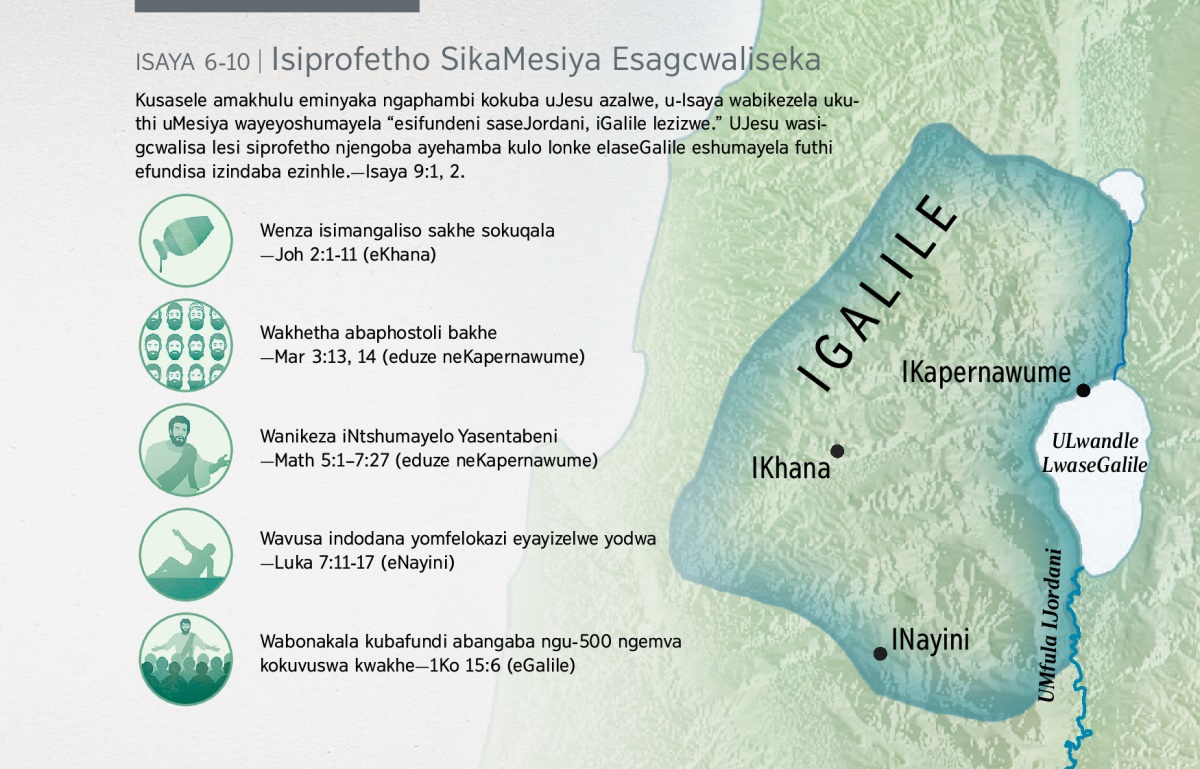 Kusasele amakhulu eminyaka ngaphambi kokuba uJesu azalwe, u-Isaya wabikezela ukuthi uMesiya wayeyoshumayela “esifundeni saseJordani, iGalile lezizwe.” UJesu wasigcwalisa lesi siprofetho njengoba ayehamba kulo lonke elaseGalile eshumayela futhi efundisa izindaba ezinhle.—Isaya 9:1, 2.